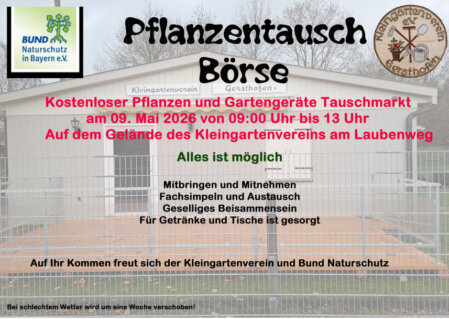 Pflanzentauschbörse am 9.5.2026! Auf dem Gelände des Kleingartenvereins Gersthofen